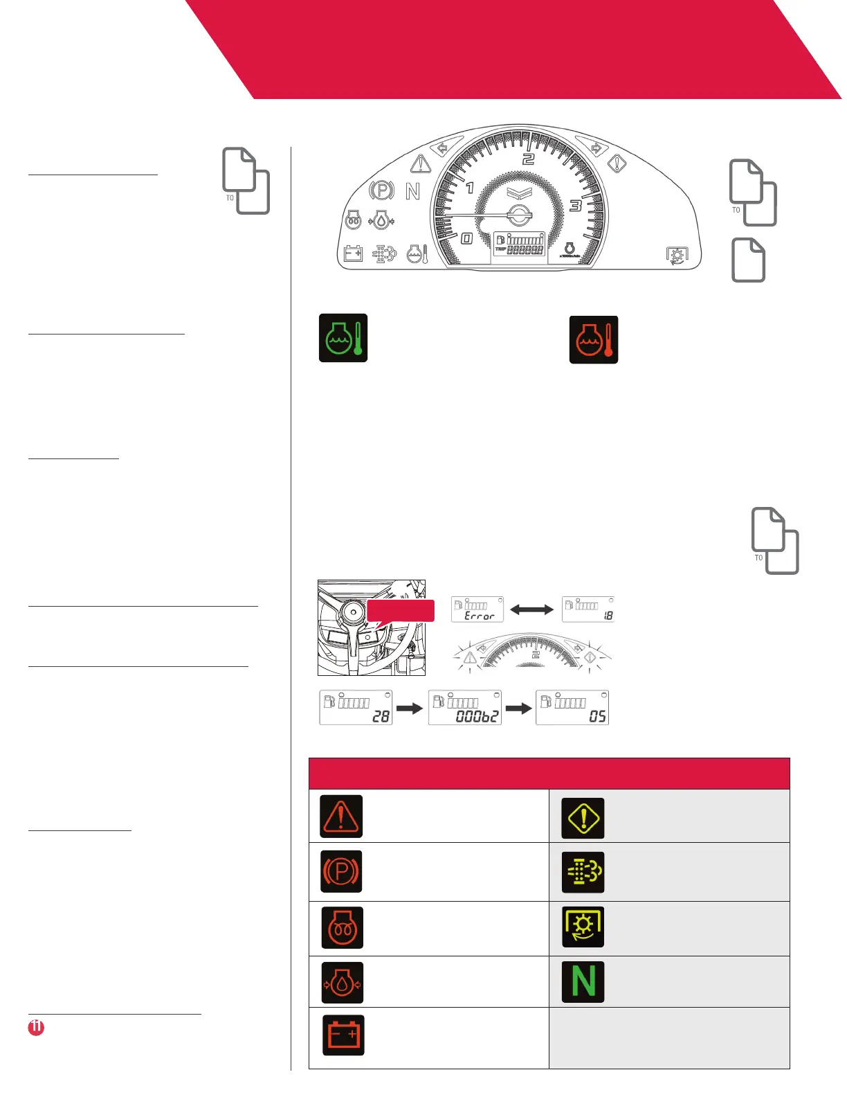 Fuel gauge: Indicate fuel level. When the remaining fuel becomes