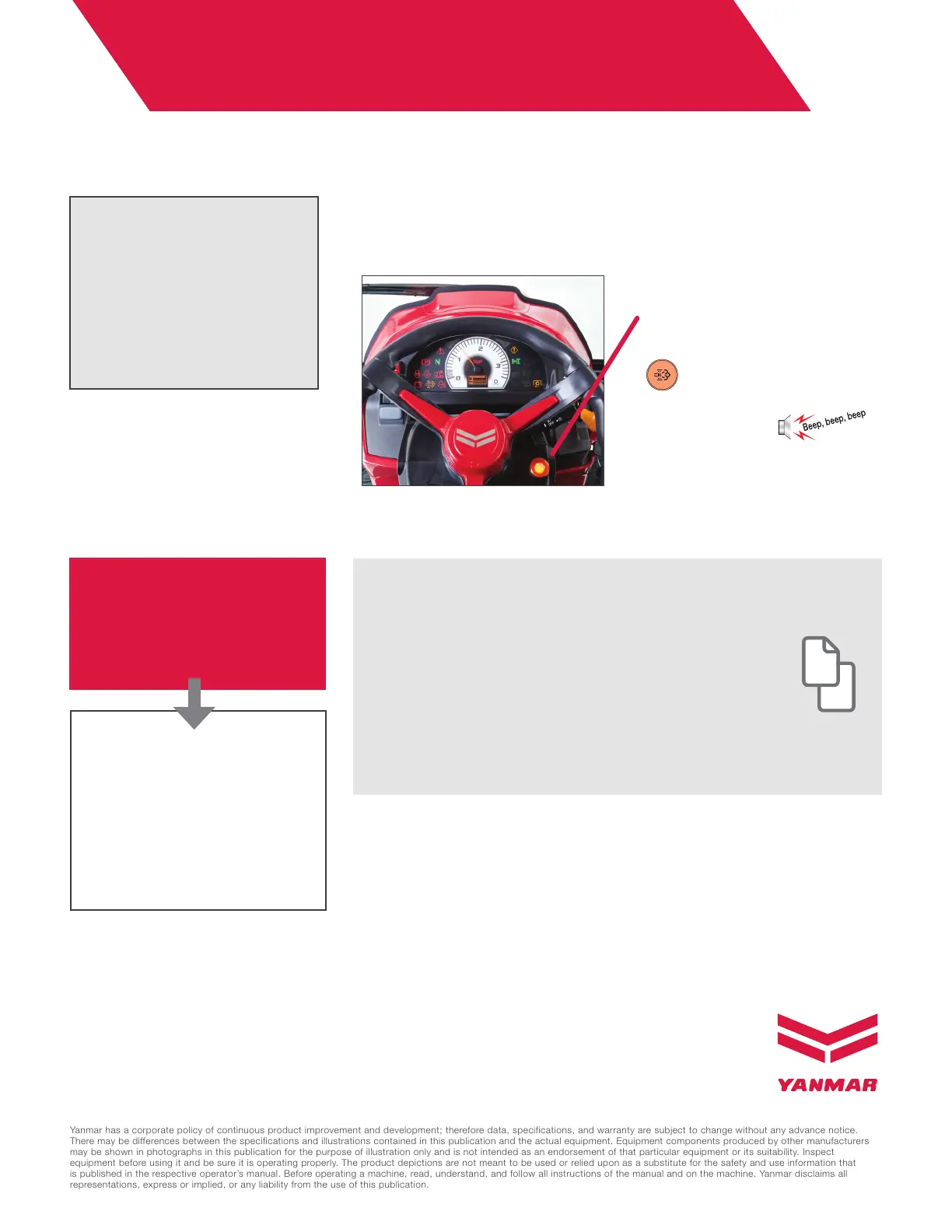 Yanmar has a corporate policy of continuous product improvement and development; therefore data, specifications, and warranty are subject to change without any advance notice.