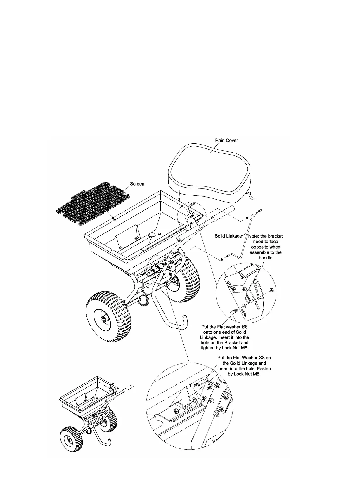 3. Put one flat washer Ø8 on the other side of Linkage Bar and tighten with one Lock Nut M8.