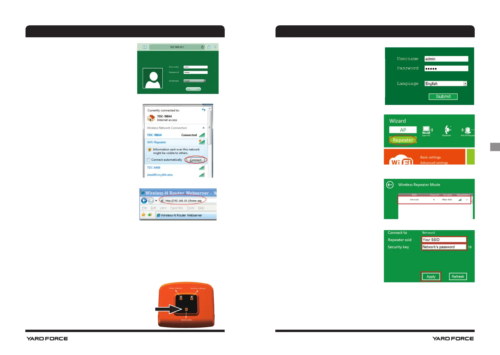 1, vériez que le répéteur wi- est sur les réglages par défaut. Si