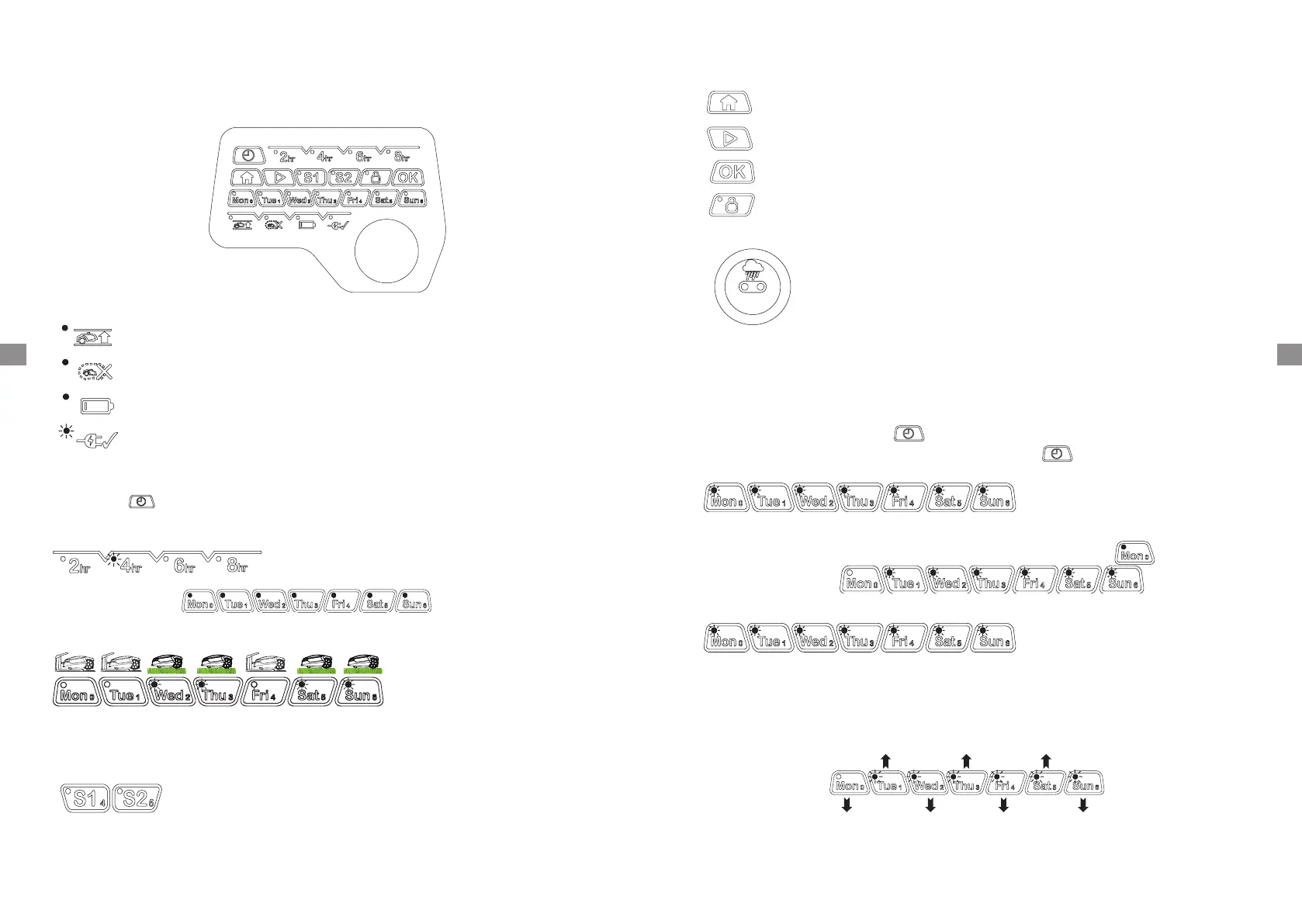 bouton correspondant à la durée de fonctionnement sélectionnée. Le robot tondeuse retournera à