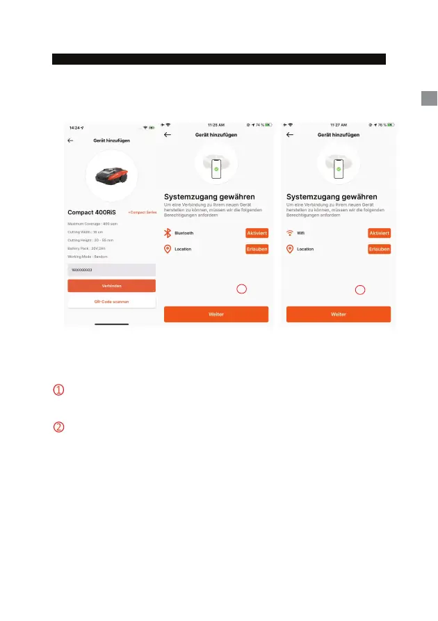 Vor dem Konfigurieren des Rasenroboters benötigt die APP eine Zugriffsberechtigung,