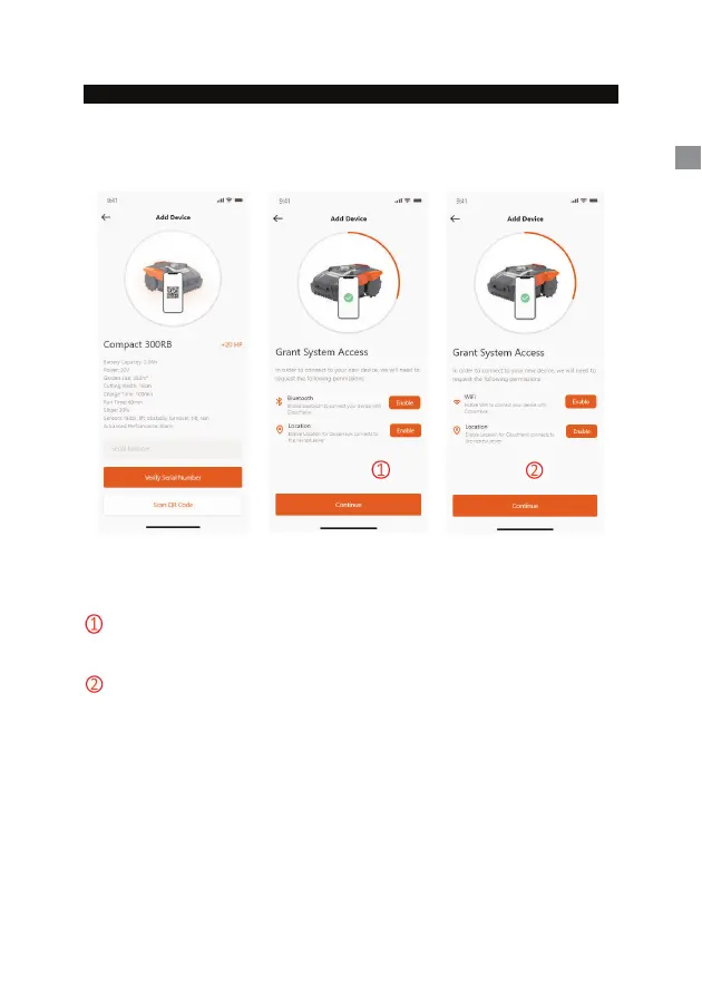 Avant de configurer la tondeuse, l’application a besoin d’une autorisationd’accès pour