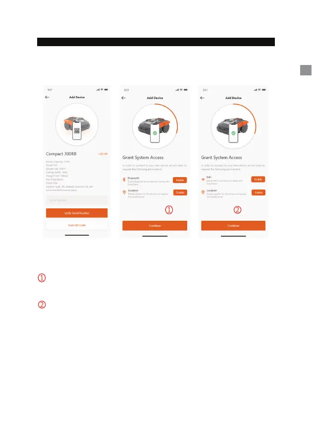 Voordat u de robotmaaier configureert, heeft de app toegang nodig om de procedure