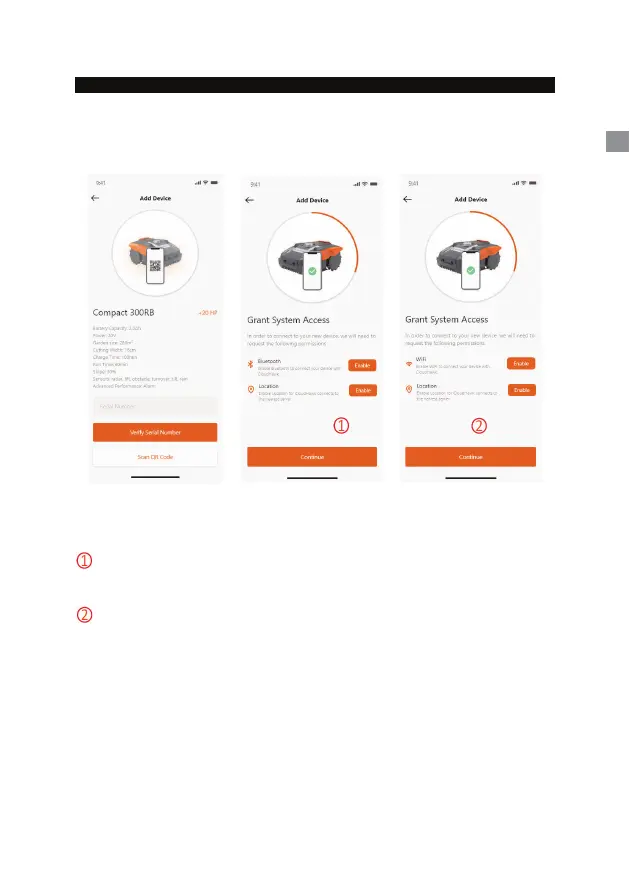 Przed przystąpieniem do konfigurowania kosiarki aplikacja potrzebuje uprawnień