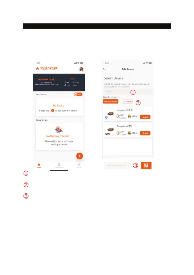 naleznete na hlavním štítku sekačky), potom můžete zařízení vyhledat a přidat.