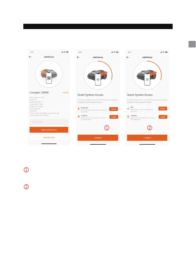 Před konfigurací sekačky je třeba aplikaci udělit přístupové oprávnění, abymohla tento