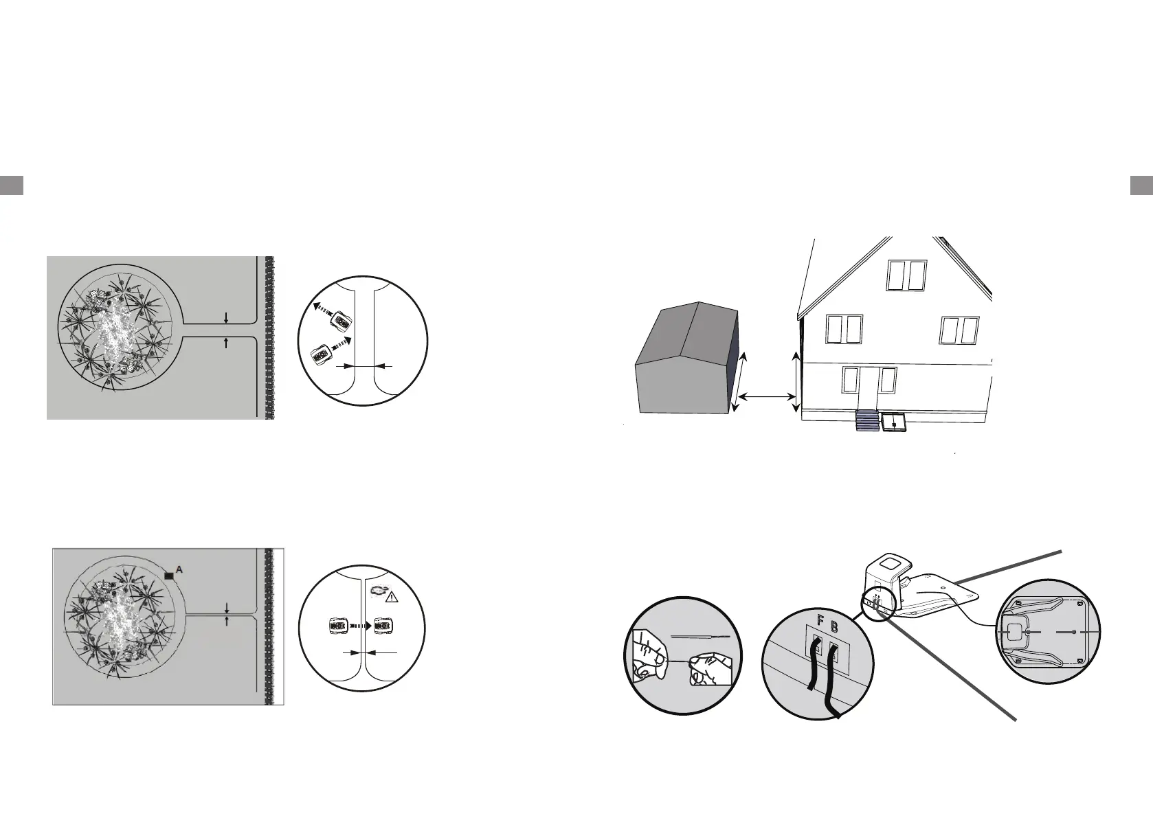 Zorg dat de draden elkaar niet kruisen - zie afbeelding. Op deze manier herkent de robotmaaier