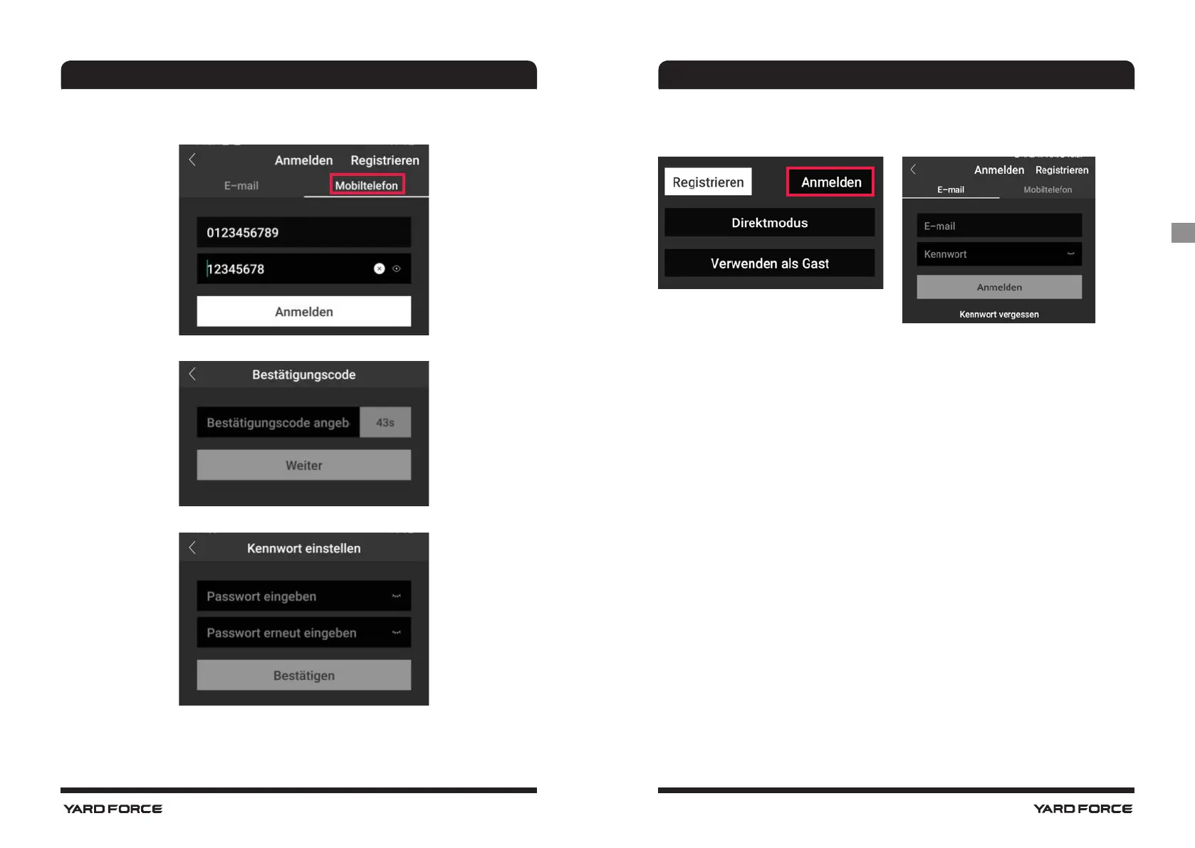Die Anmeldung erfolgt per E-Mail oder Handy und Kennwort.