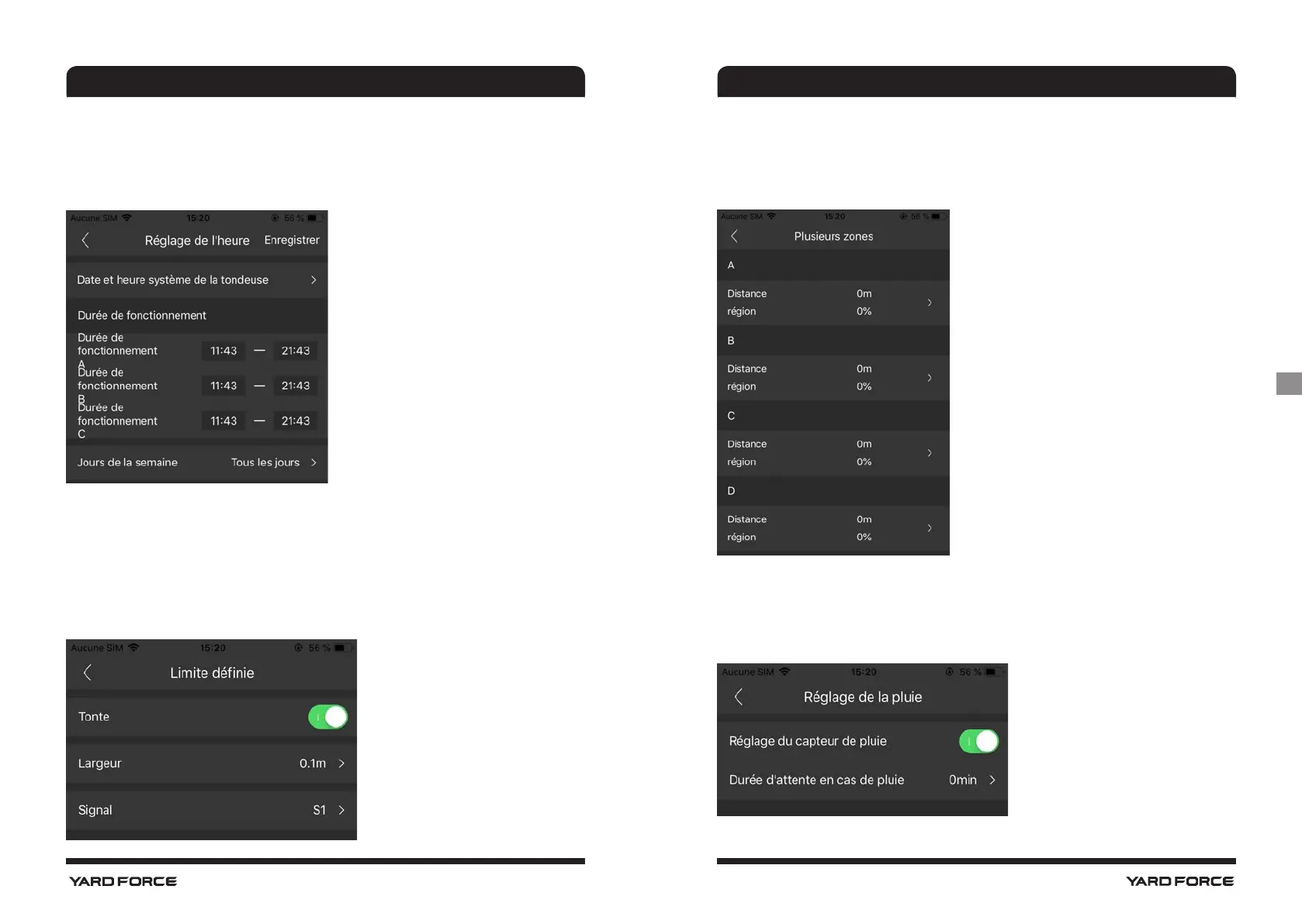 Ici, vous pouvez définir jusqu'à 4 zones de tonte différentes.