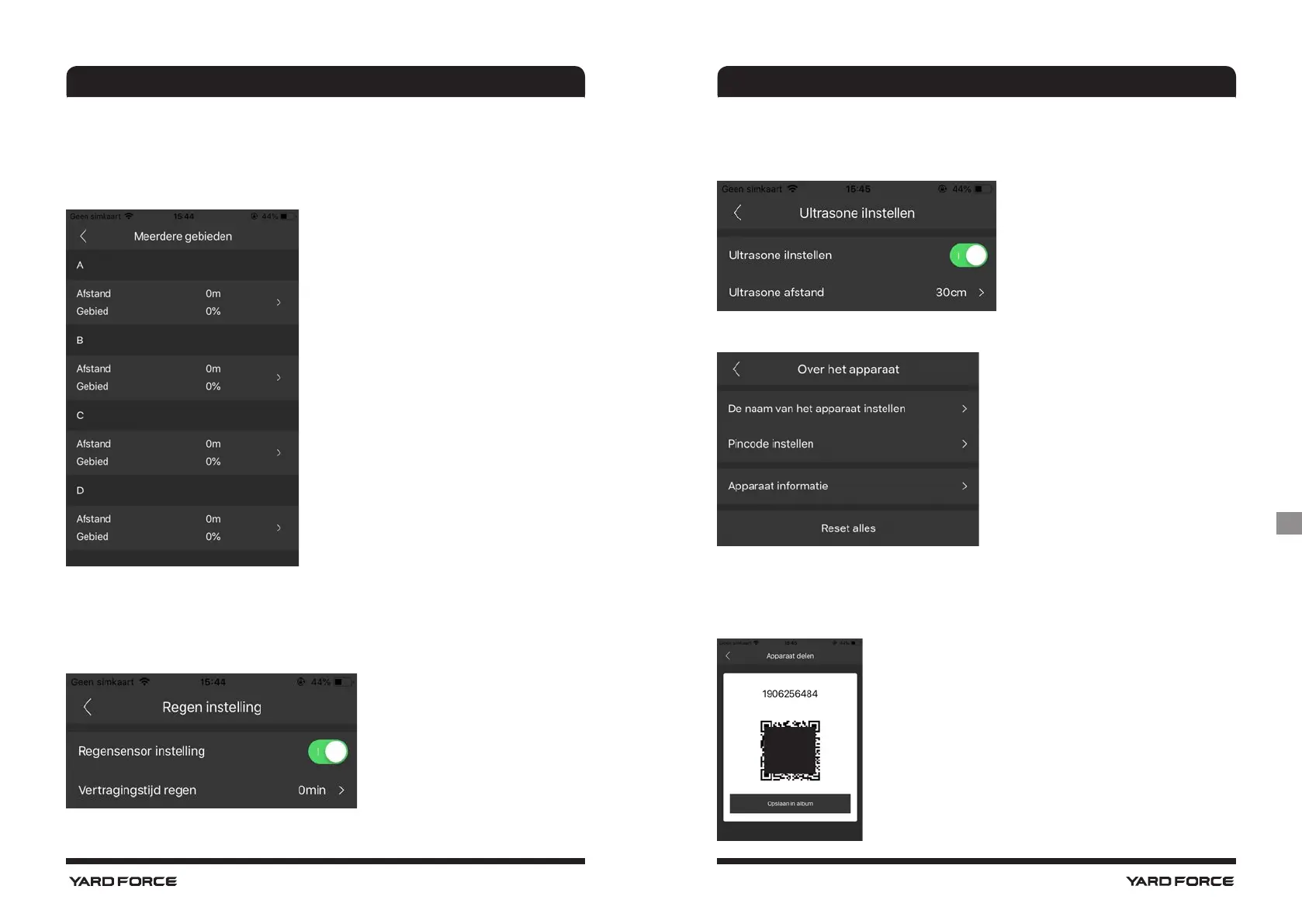 U kunt hier tot 4 verschillende maaigebieden instellen