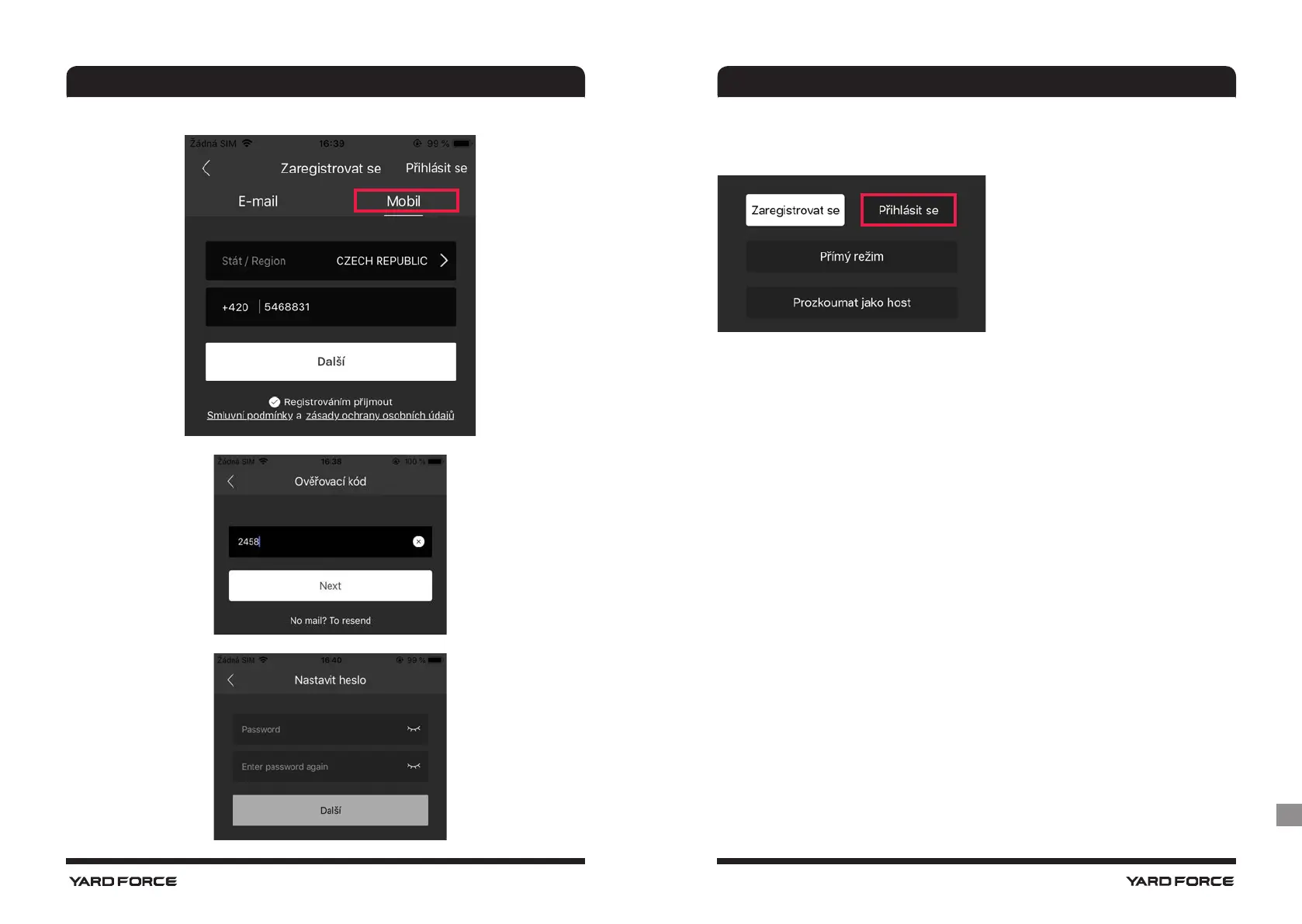 Přihlášení lze provést e-mailem nebo mobilním telefonem s heslem.