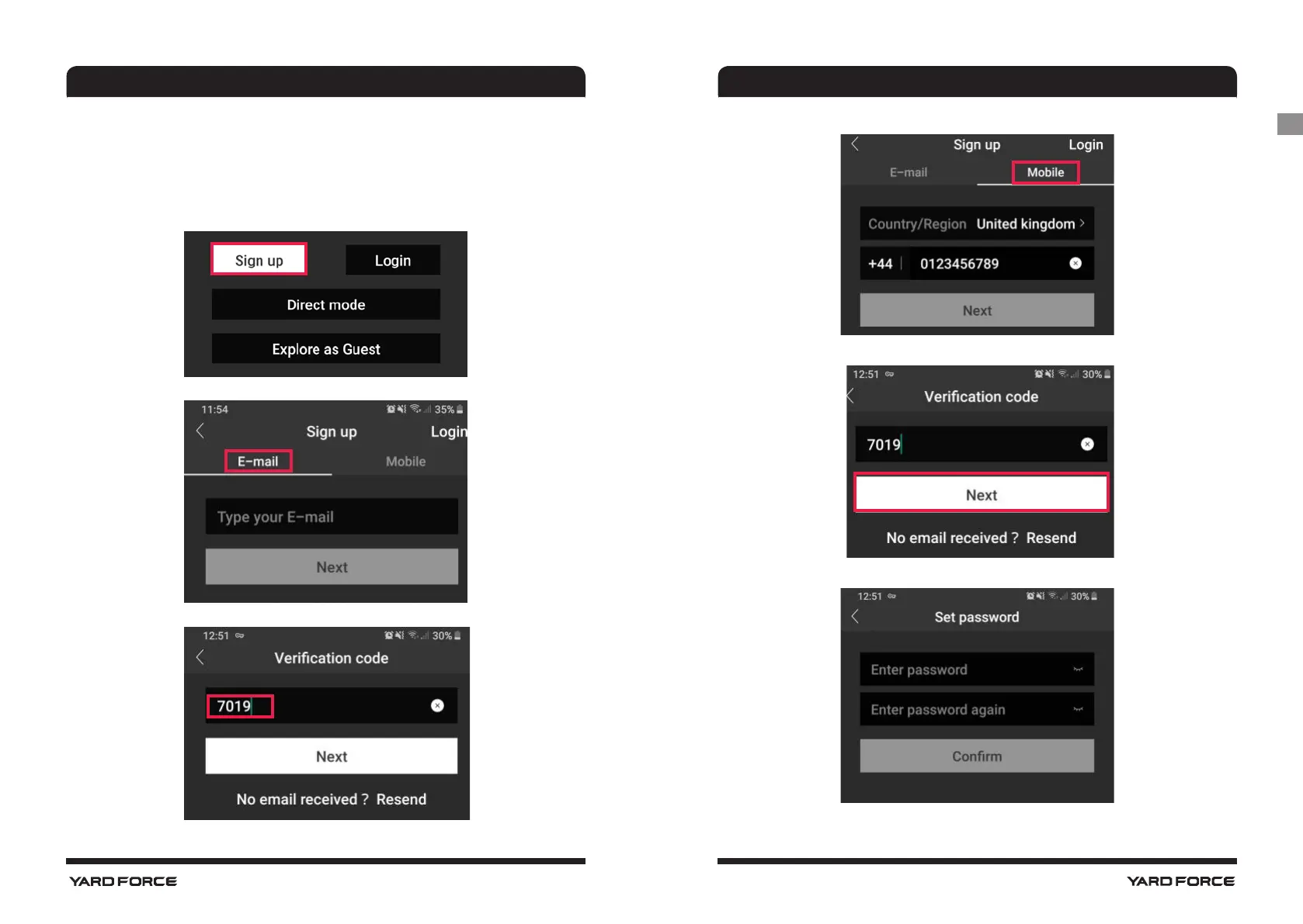 Yard force LUV1000Ri - MOWAP Registration; Registration by Email; Registration by Mobile Phone