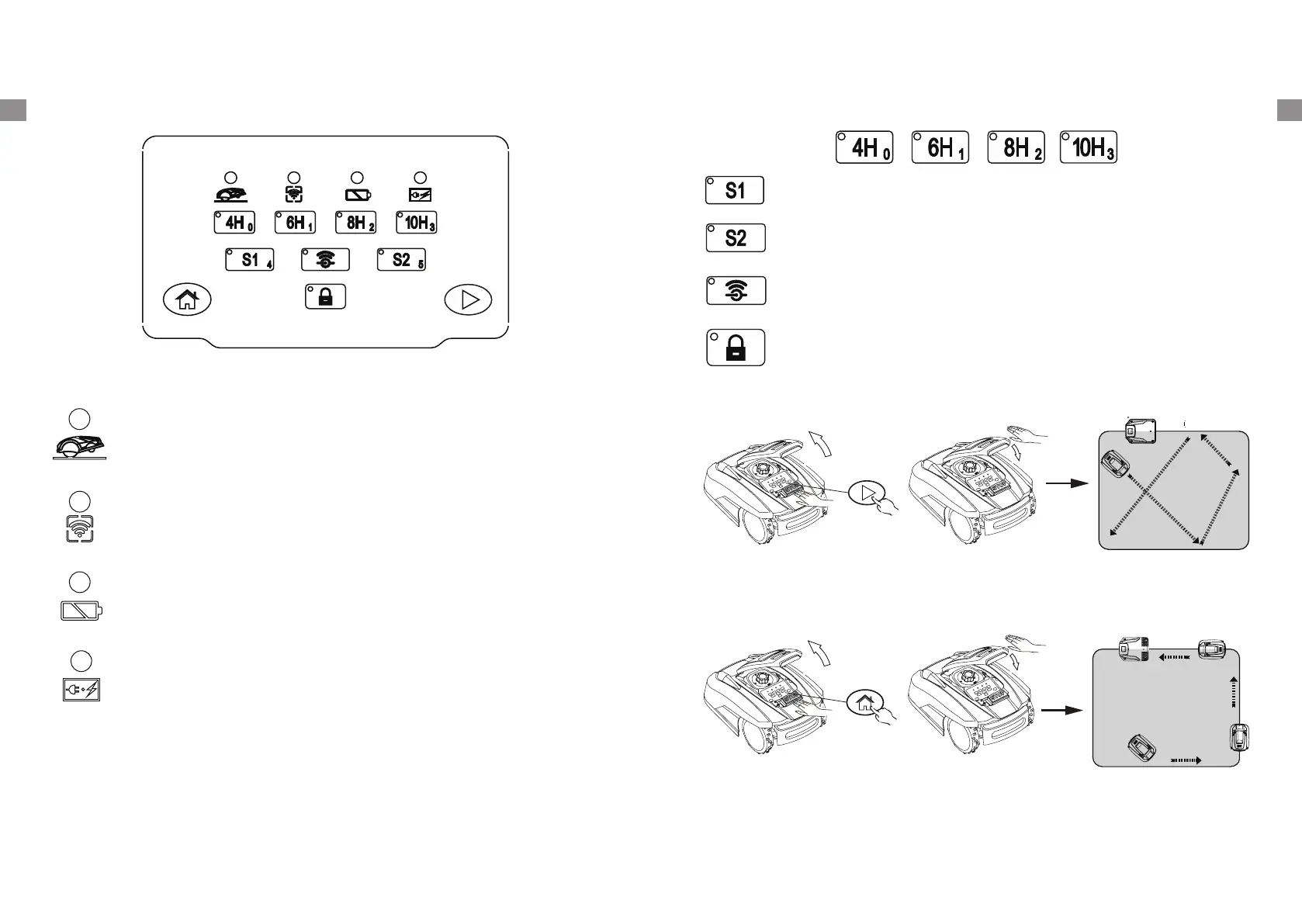 LED-Anzeige leuchtet unter der Arbeitszeit-Auswahltaste, die ausgewählt wurde. Der Mähroboter