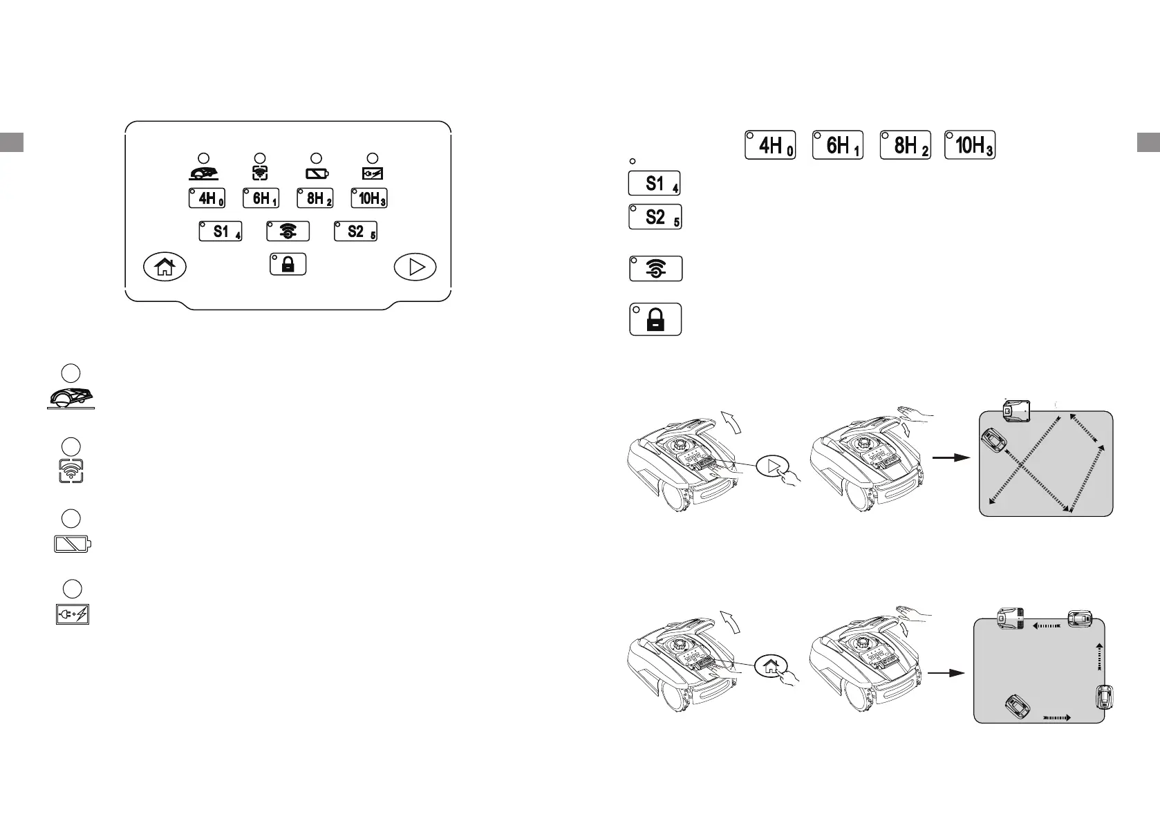 Appuyez sur le bouton Marche et fermez le couvercle supérieur. Le Robomower se mettra en route