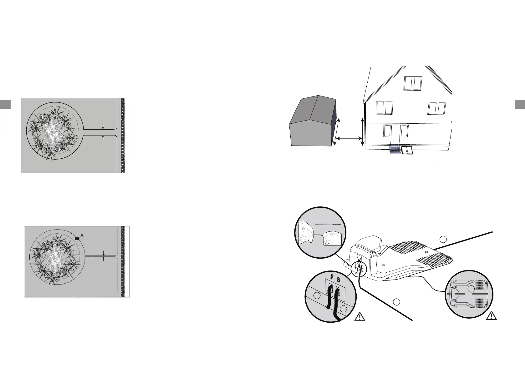1) Ponechte vzdálenost mezi paralelními kabely nad 10 cm. Tímto způsobem robotická sekačka