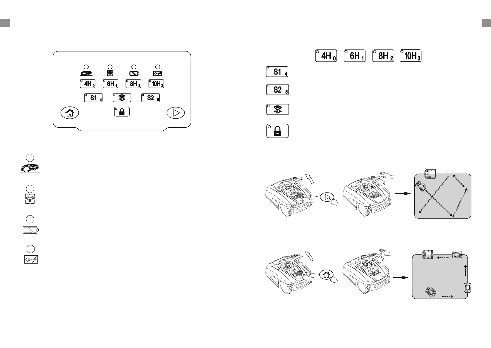 LED indicator will show under the working time button that has been selected. Robotic Mower will