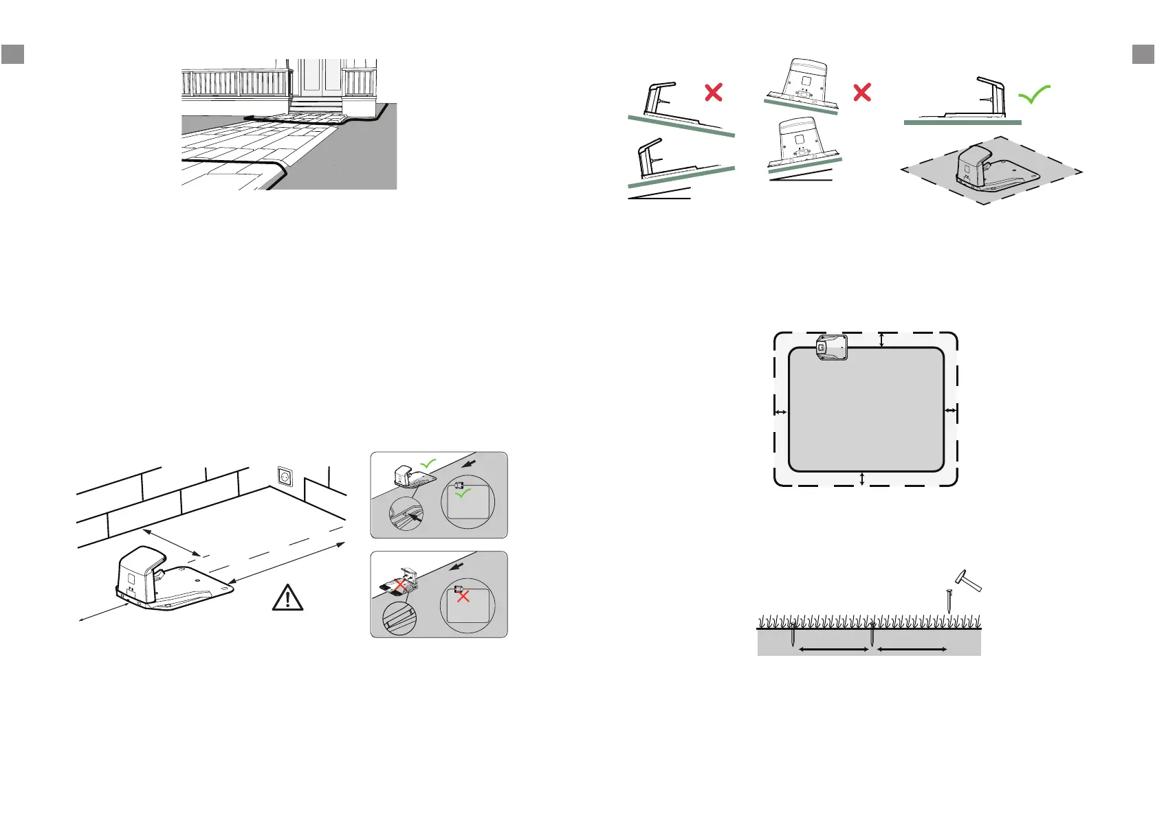 Important : Placez la station de chargement sur un sol régulier et plat, à distance des mares,
