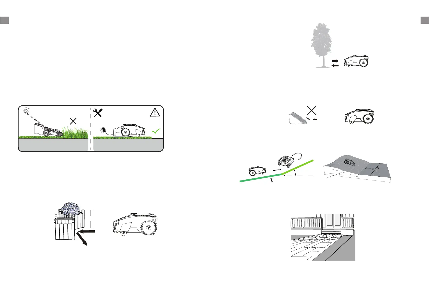 pravítka pro ochranu překážek a zařízení. Položte ohraničující kabel tak, aby robotická sekačka