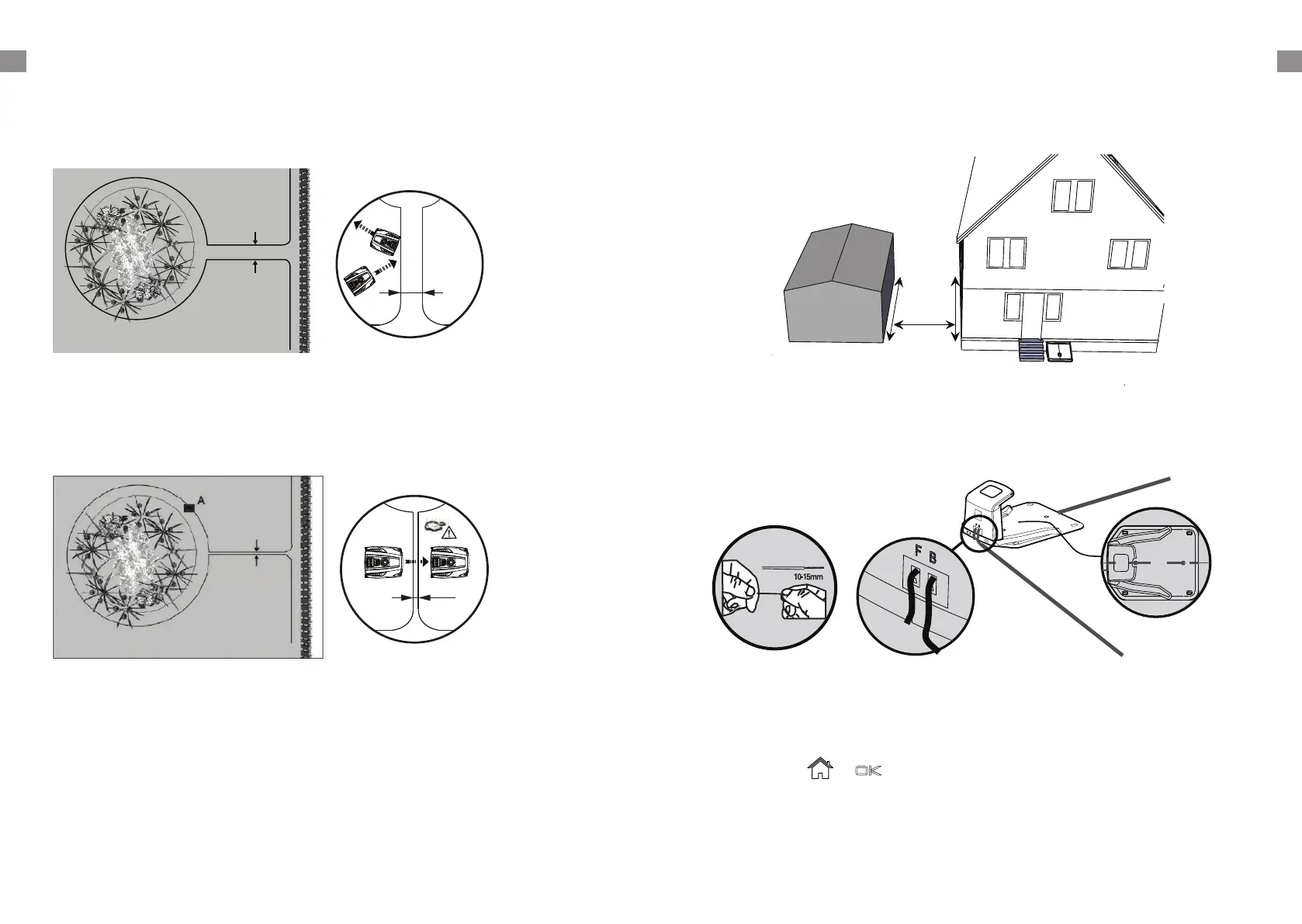 možnost vyžaduje umístění překážky na ohraničující kabel kolem květinového záhonu. Umístěte