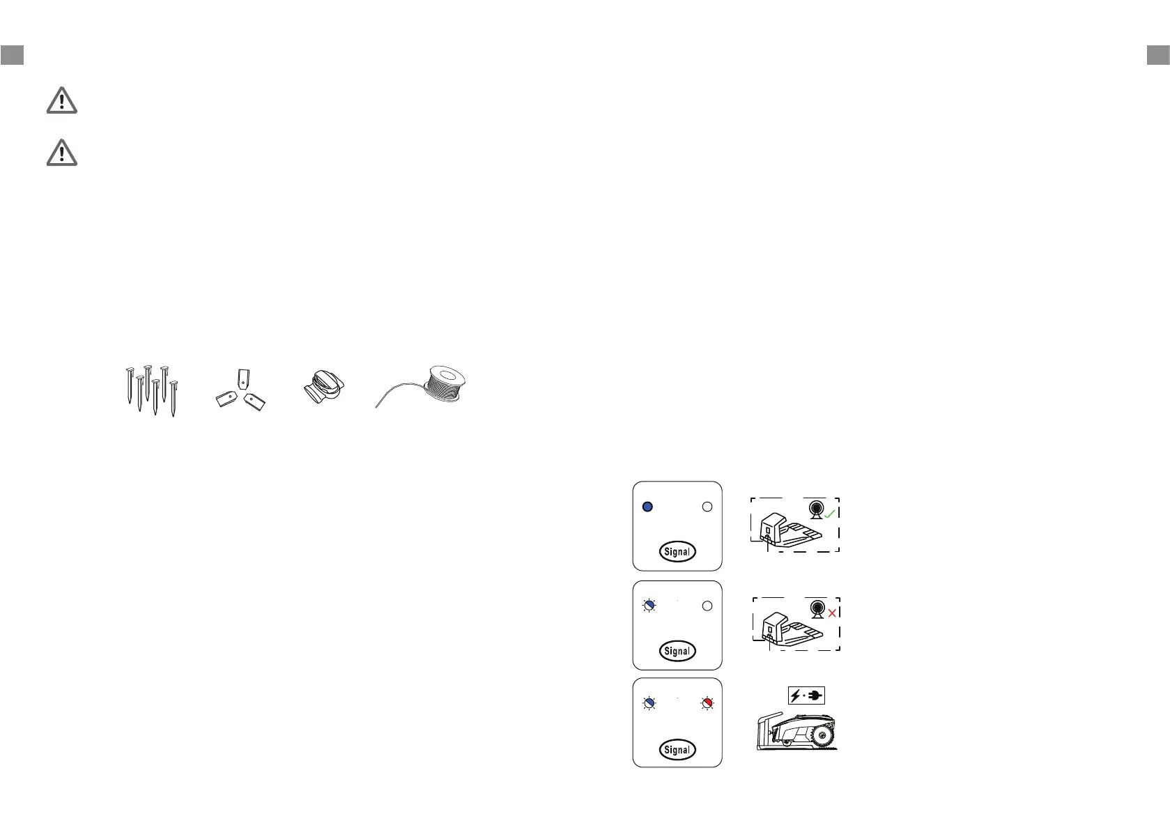 • Zkontrolujte, zda je ohraničující kabel před a pod nabíječkou v přímce.