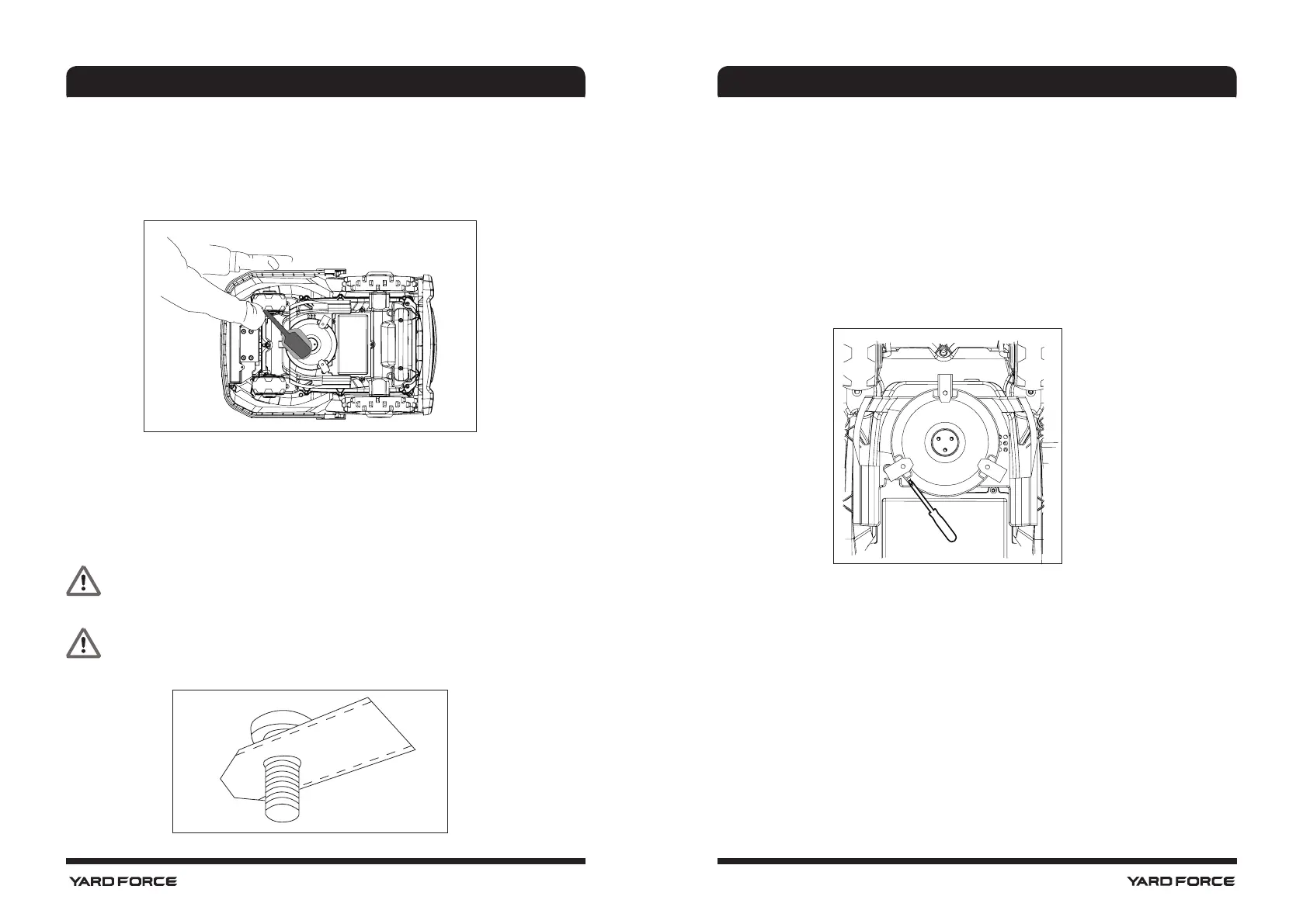 screws. Do not turn on the Robomower before placing it back on its wheels - beware of