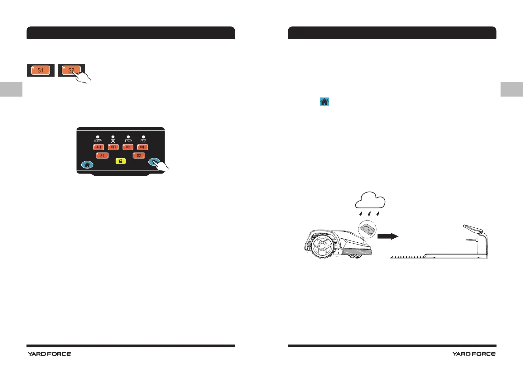 Druk op S1 of S2 op het bedieningspaneel om het signaal van de robotmaaier met deze van het