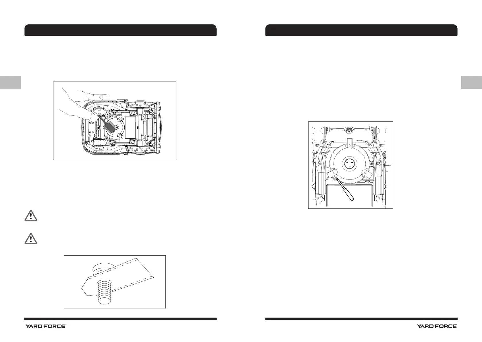 veiligheidshandschoenen. Leg de robotmaaier op zijn kant om de onderkant te onthullen. Reinig
