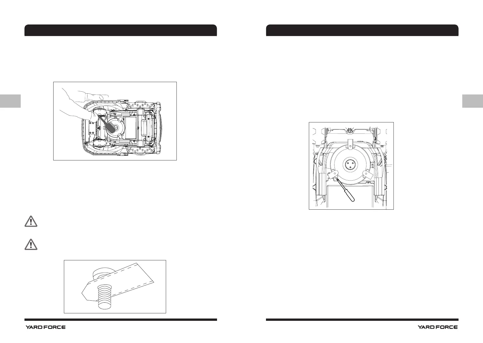 že se pohybuje volně, a zkontrolujte, zda se čepele otáčejí kolem jejich os a že je žádná tráva