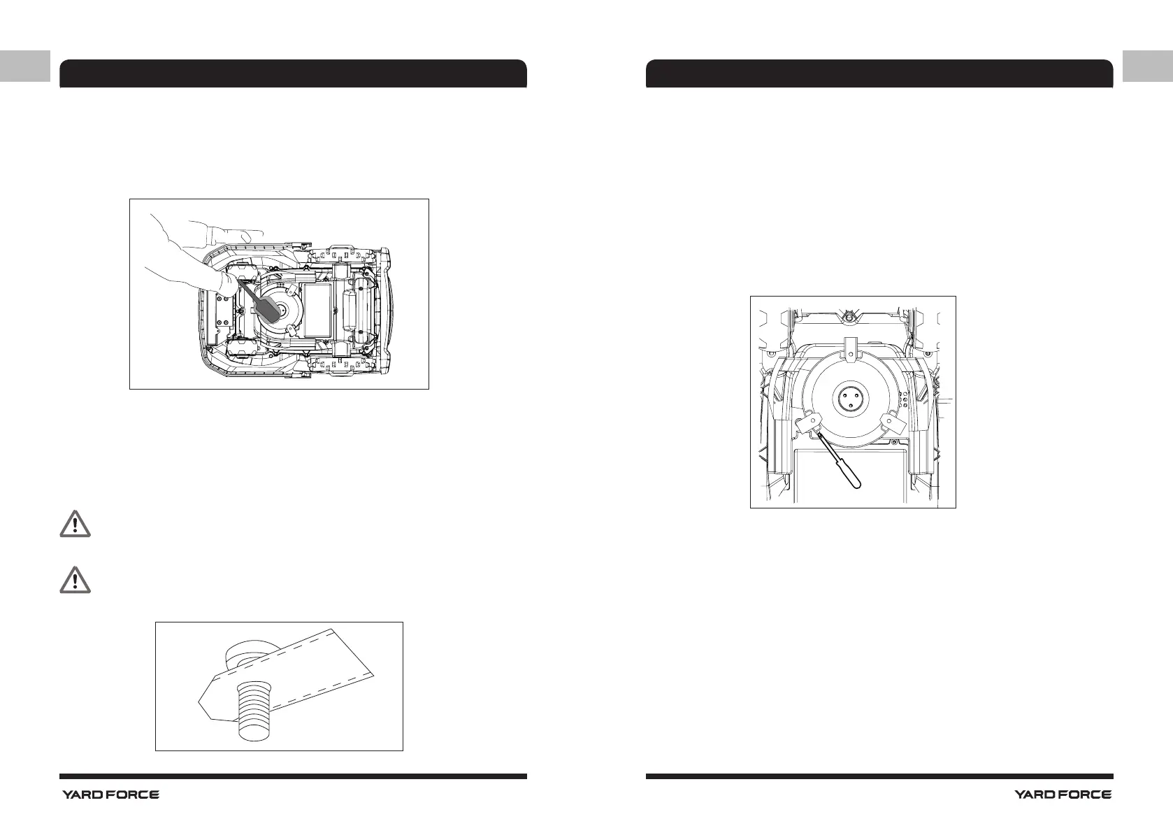 screws. Do not turn on the Robotic Mower before placing it back on its wheels - beware