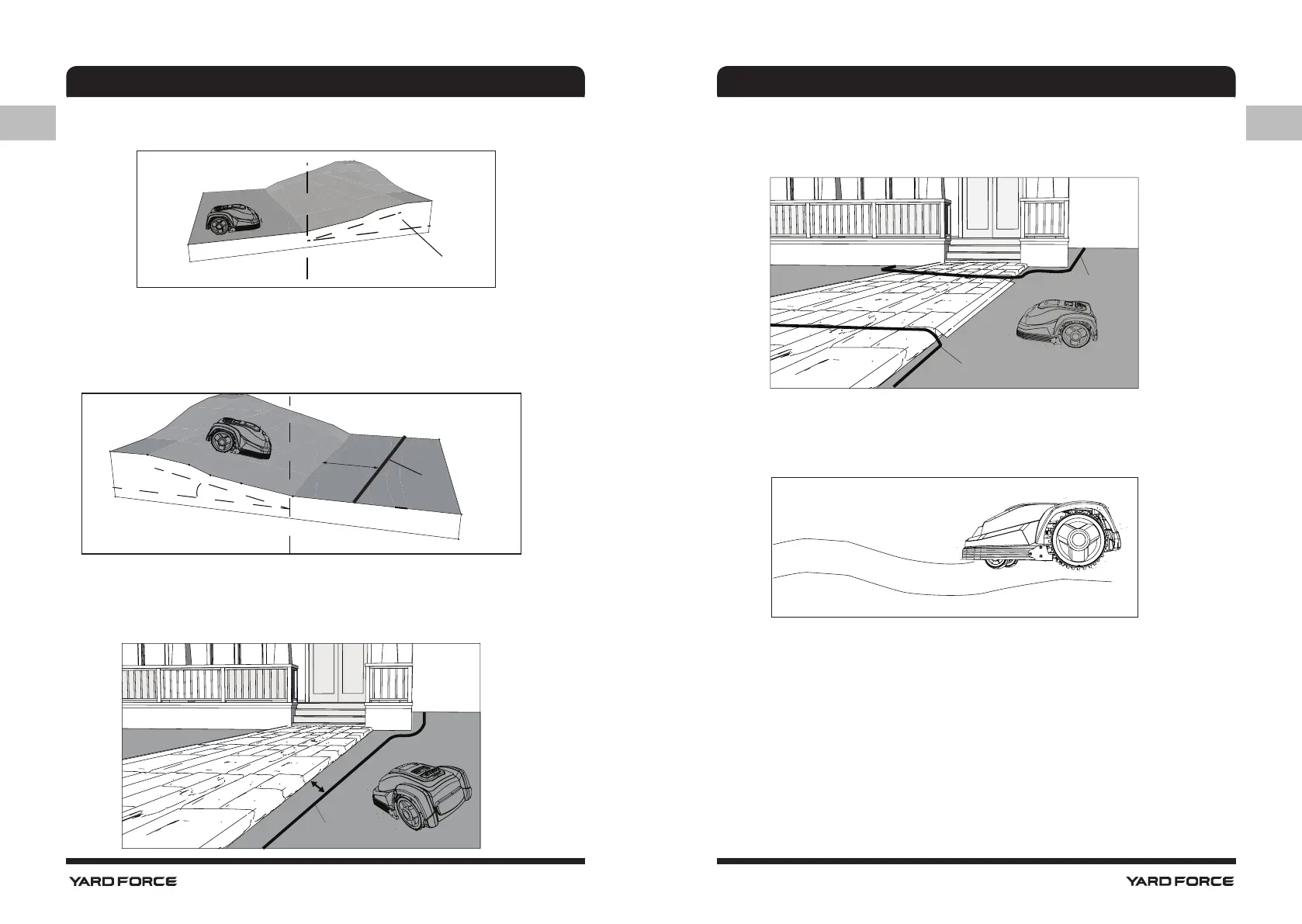 Boden berühren. Es ist ratsam, die Fläche vor Gebrauch des Mähroboters einzuebnen oder