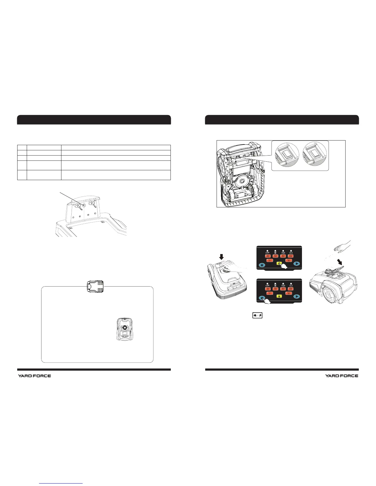The LED above the symbol will light, which means that the robot mower is charging