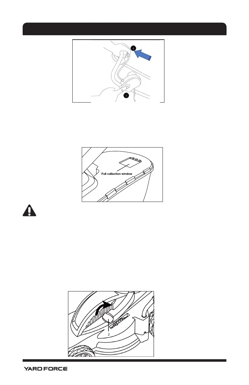 1. Si le sac de collecte est vide ou s’il n’est pas rempli d’herbe, la fenêtre d’indication sera