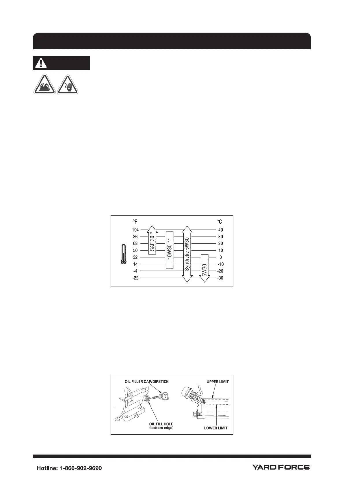 • Above 80°F (27°C) the use of 10w30 may cause increased oil consumption. Check oil level