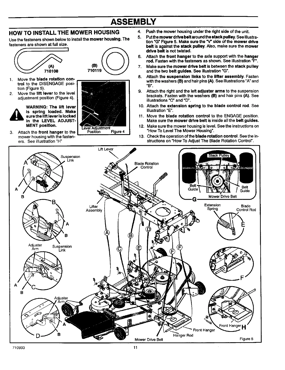 tion "G" Figure 5. Make sure the "V" side of the mower drive