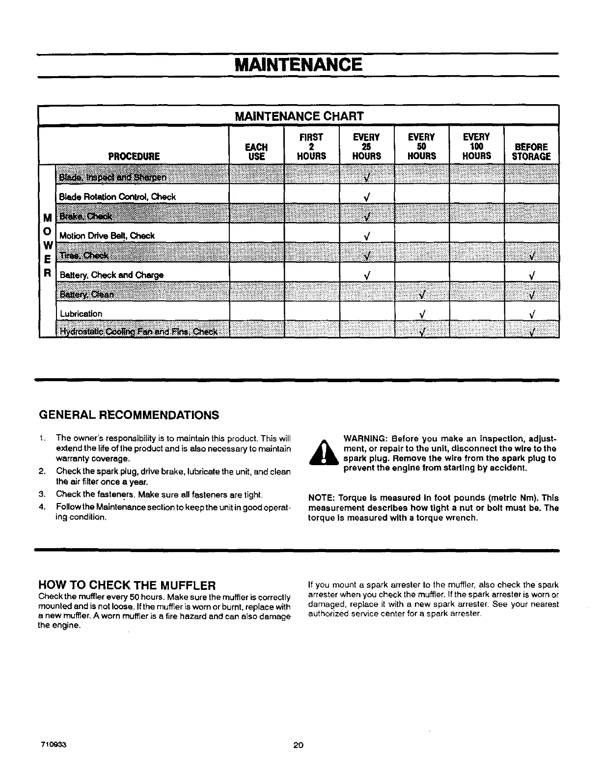 1. The owner's responsibilityis to maintain this product. This will _ WARNING: Before you make an inspection, adjust-