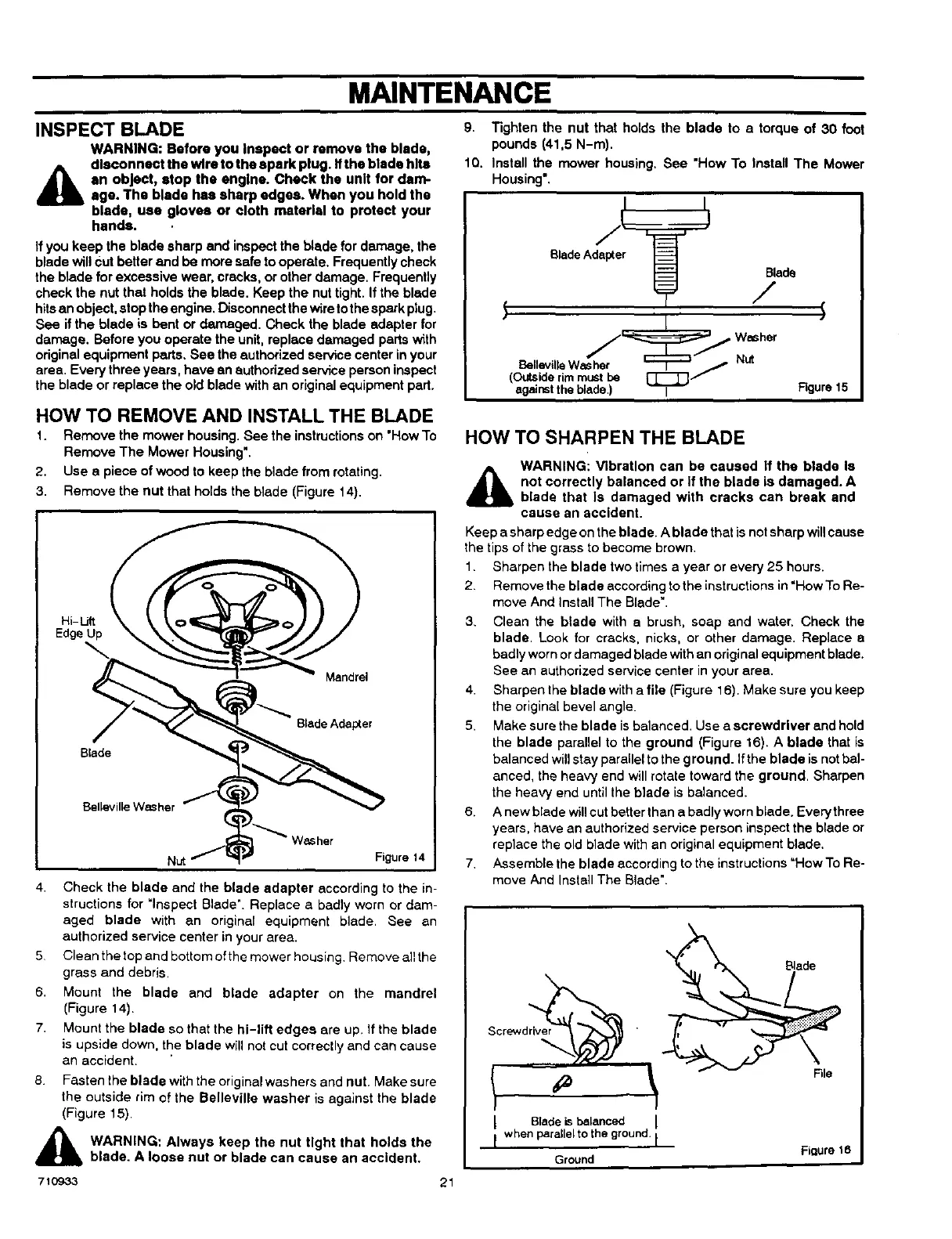 balanced willstay parallel to the ground. If the blade is not bal-