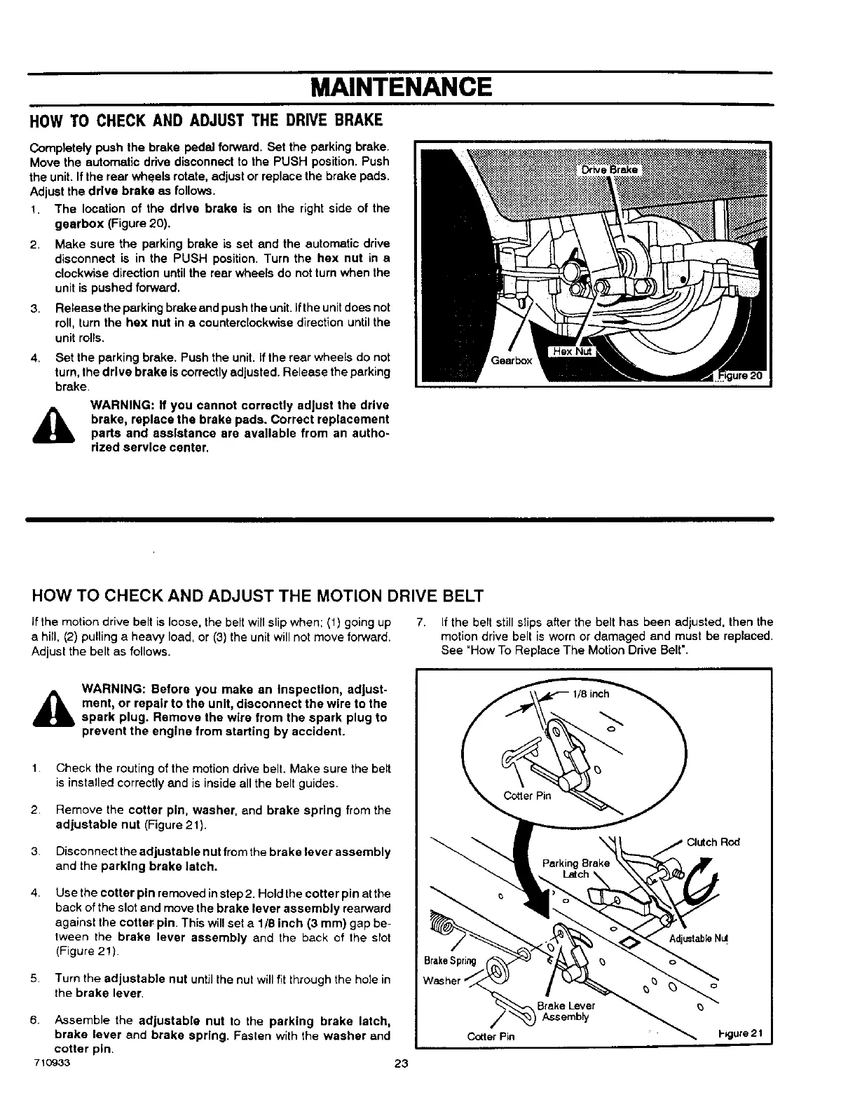 HOW TO CHECK AND ADJUST THE DRIVE BRAKE
