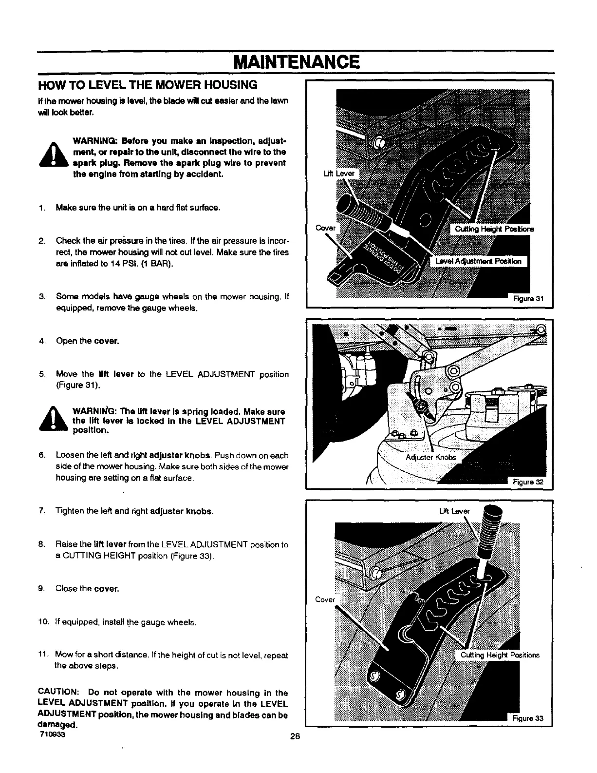 ADJUSTMENT posiflon, the mower housing and blades can be