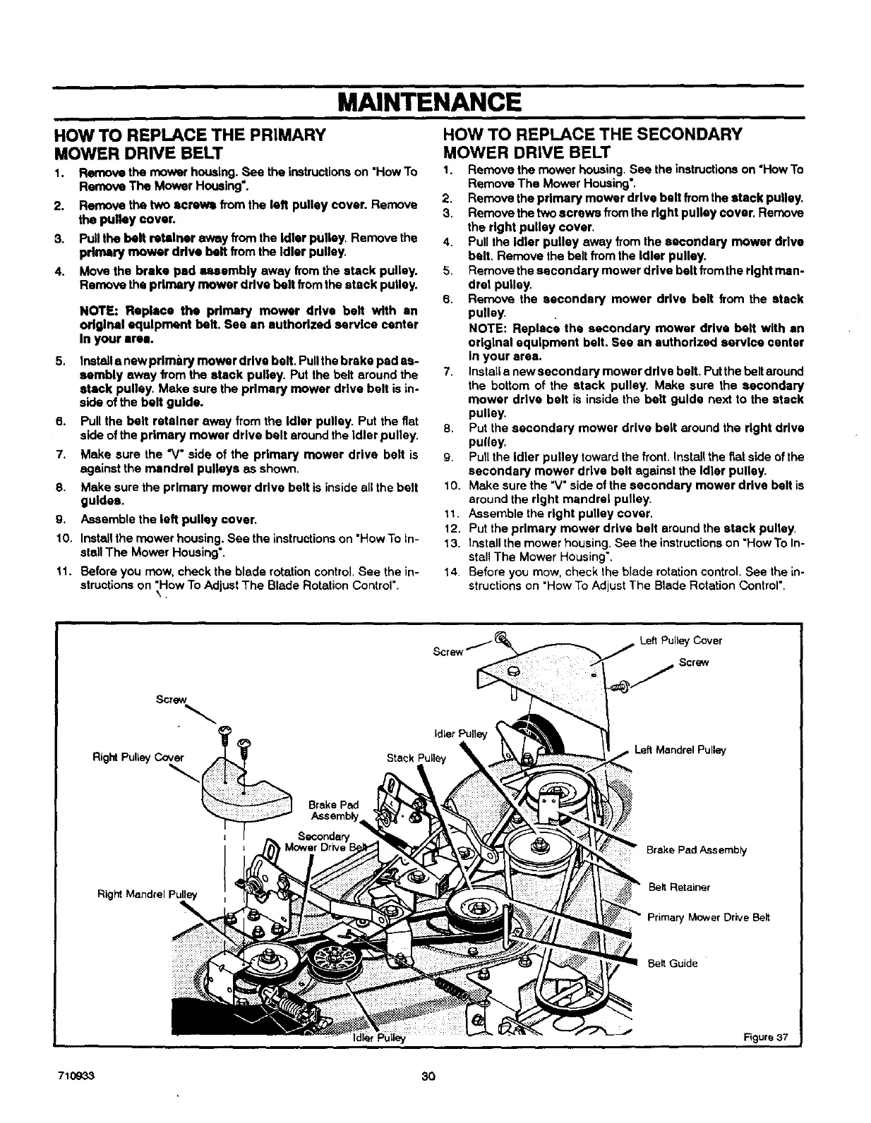 NOTE: Replace the pdmary mower drive belt with an