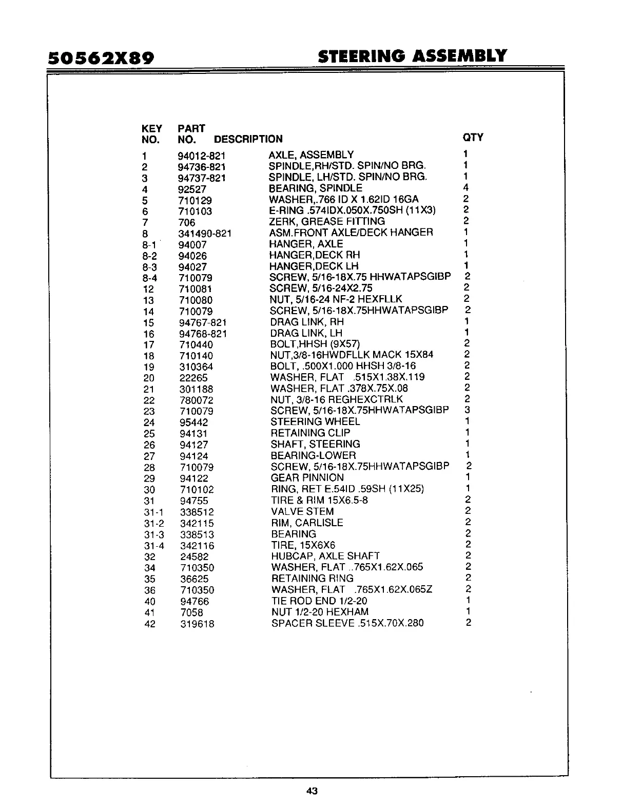 SO $62X89 STEERING ASSEMBLY