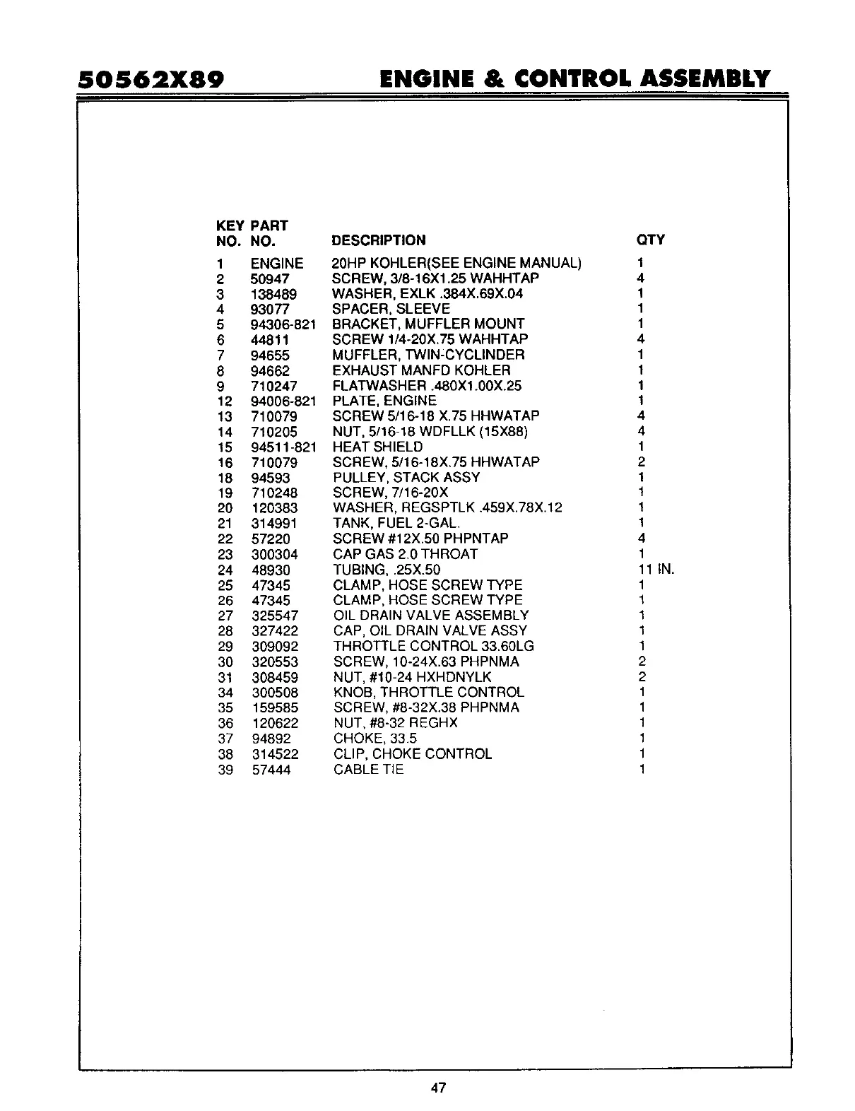 20HP KOHLER(SEE ENGINE MANUAL) 1