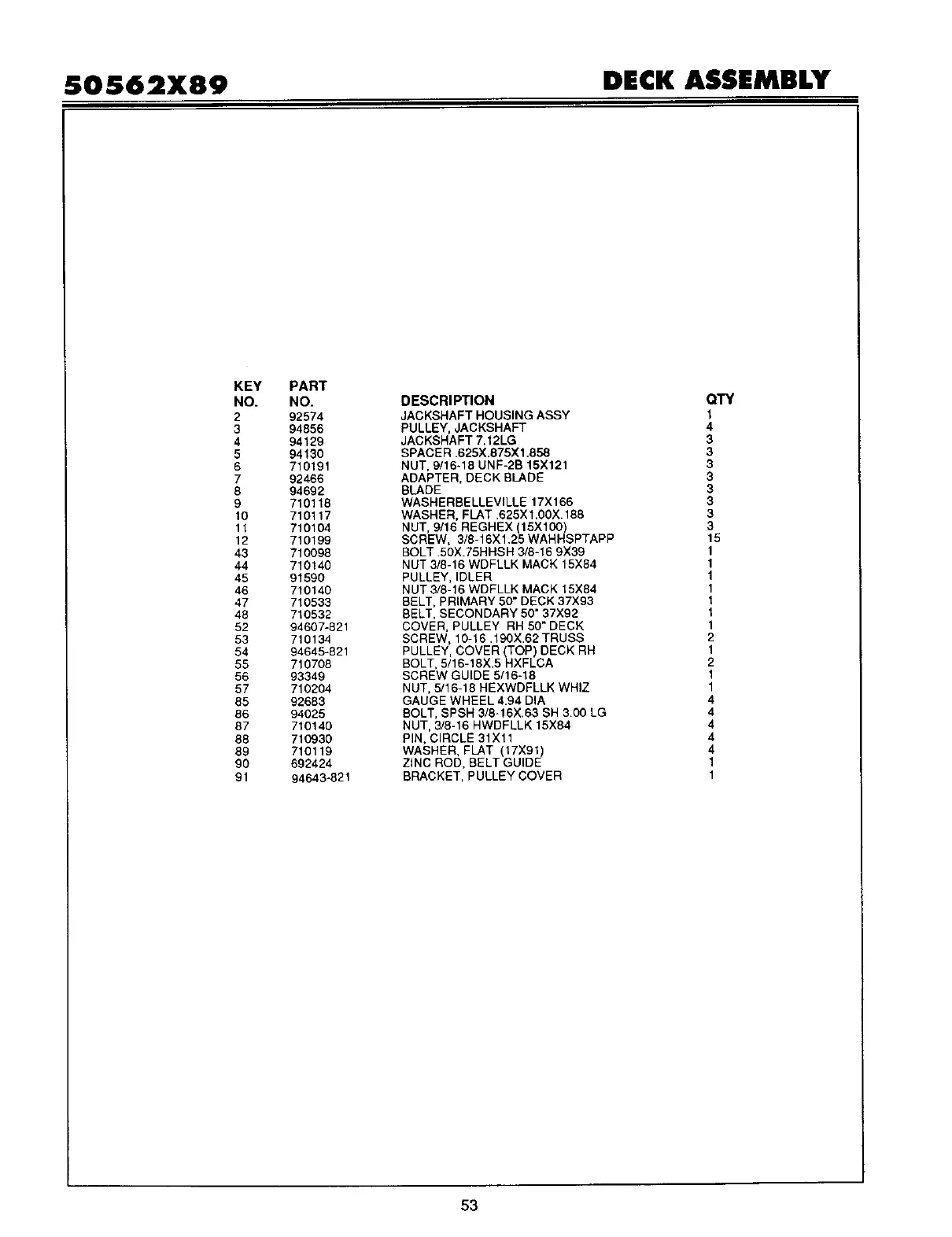 SOS62X89 DECK ASSEMBLY