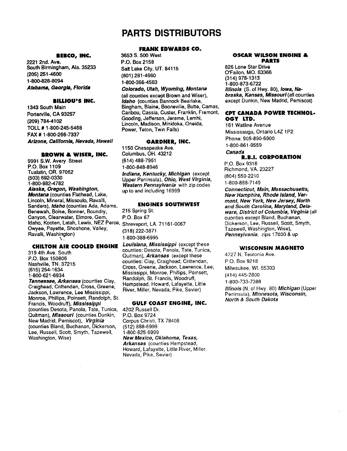 PARTS DISTRIBUTORS