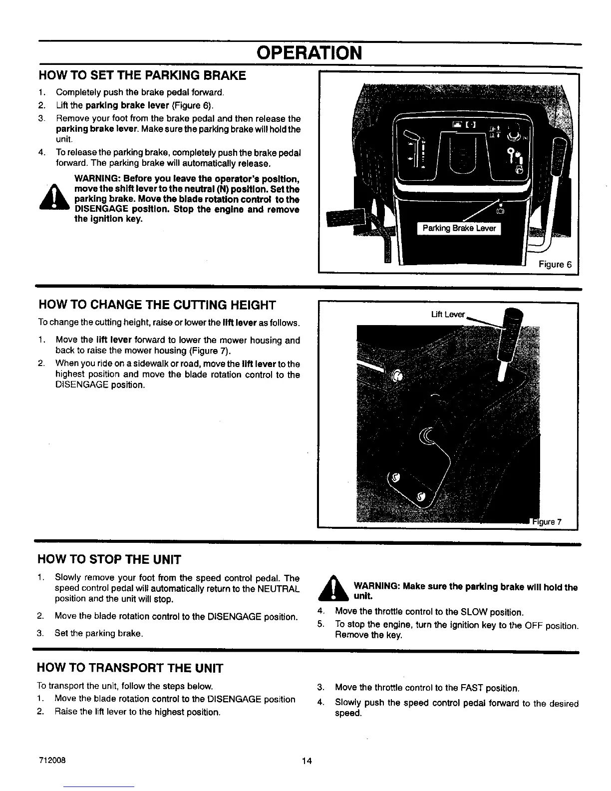 2. lift the parking brake lever (Figure 6).