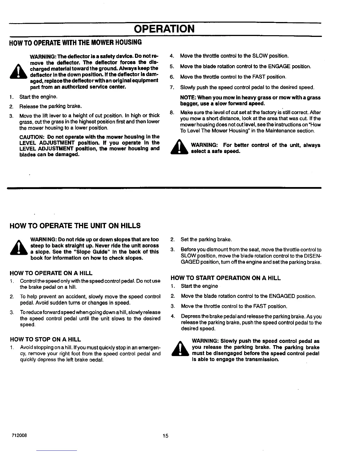 HOWTO OPERATEWITHTHE MOWERHOUSING