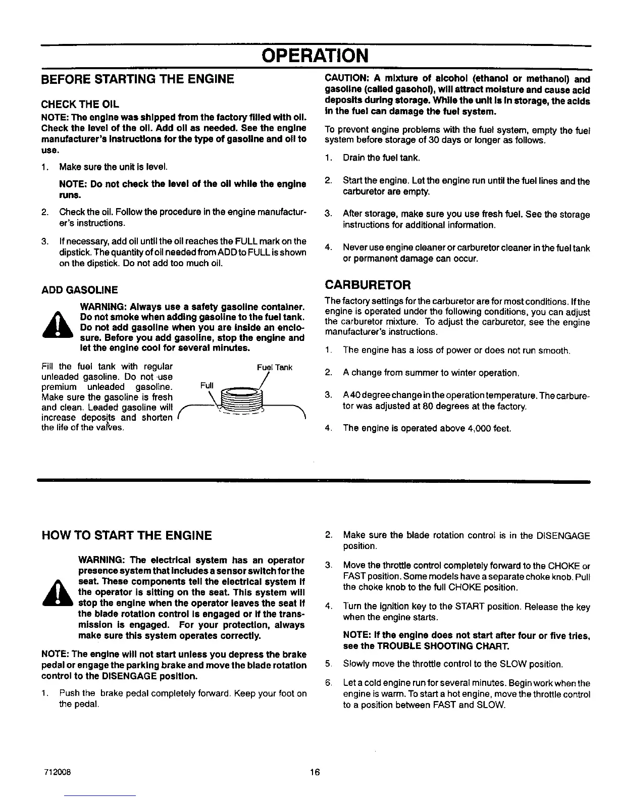 BEFORE STARTING THE ENGINE