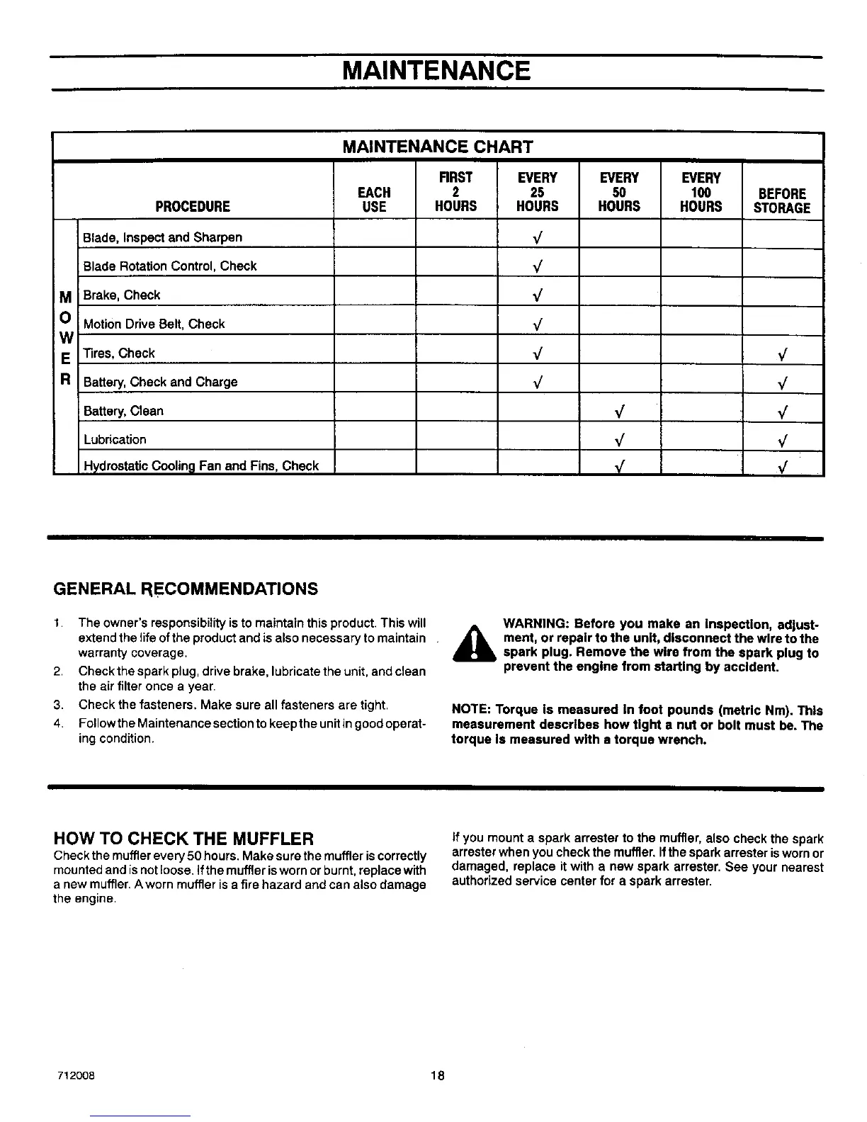 t. The owner's responsibility isto maintain this product. This will A WARNING: Before you make an inspection, adjust-