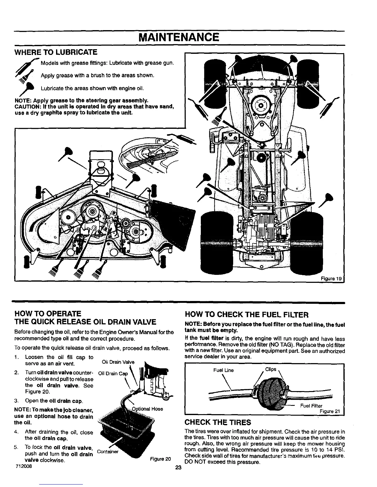 from cutting level. Recommended tire pressure is !0 to 14 PSI.
