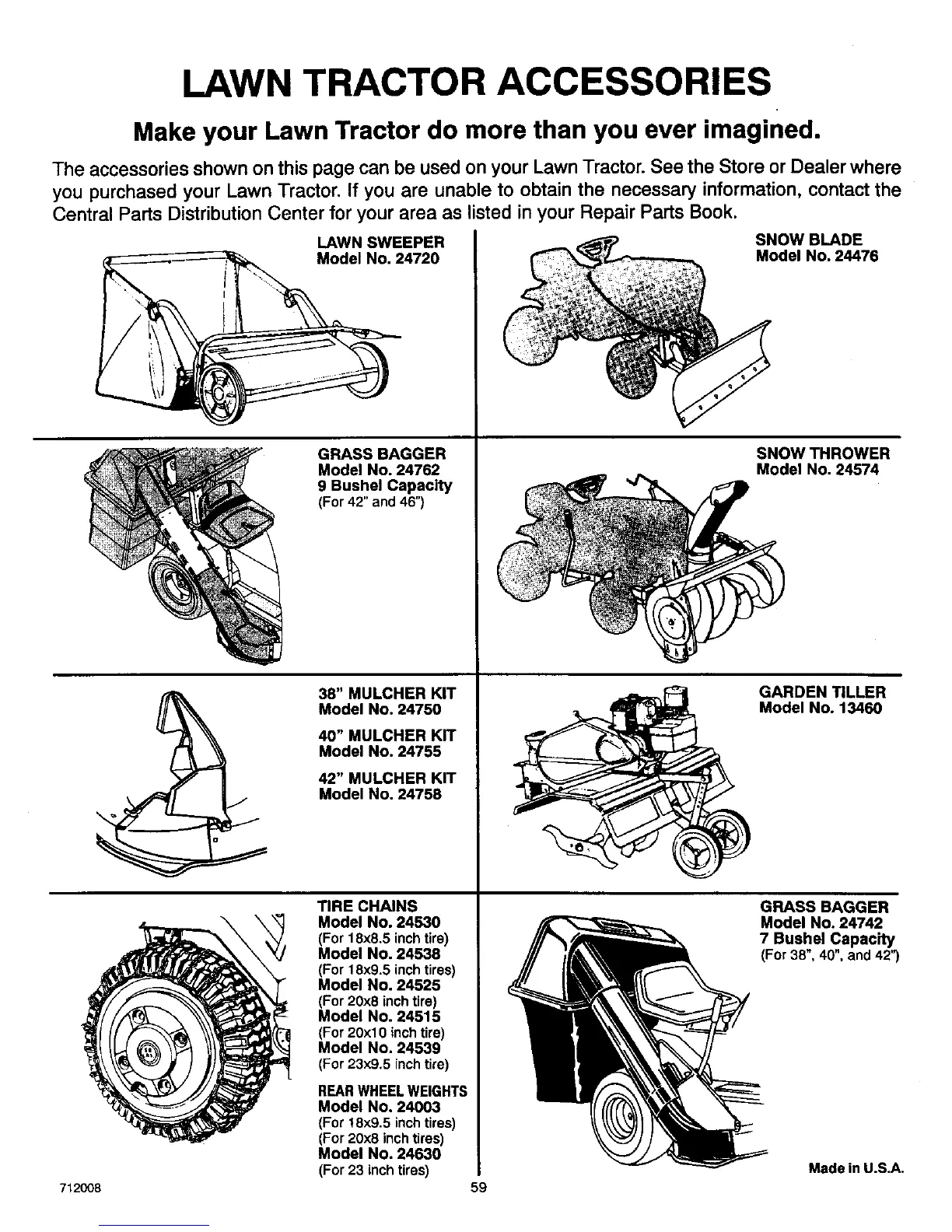 The accessories shown on this page can be used on your Lawn Tractor. See the Store or Dealer where